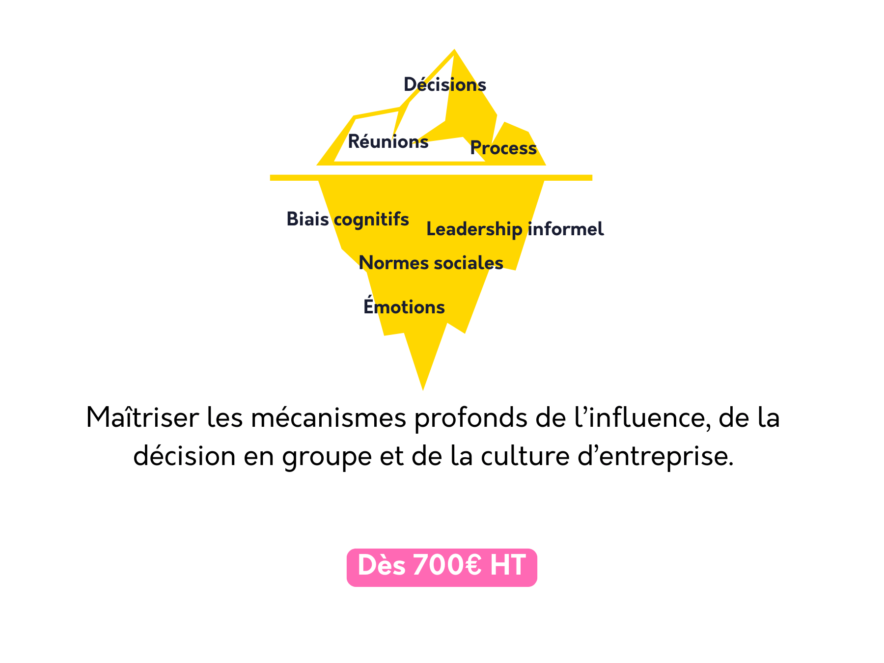 Ces formations B2B d’une journée sont conçues pour aider les équipes à mieux comprendre les mécanismes de décision, de communication et d’influence. À travers une approche pédagogique, concrète et accessible, elles permettent de prendre du recul, d’affiner les pratiques et de renforcer la qualité des décisions professionnelles.